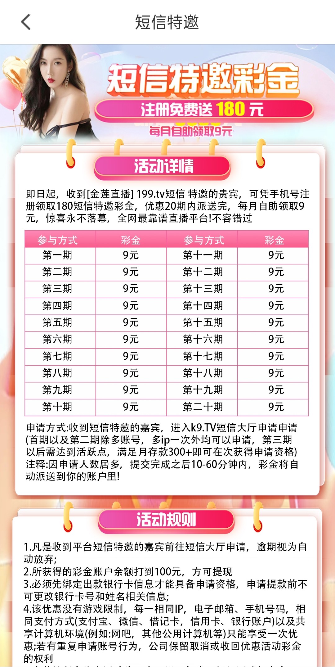 找客服申请9彩金,共20期,免费送前两期,我是碰瓷送的,不送无视