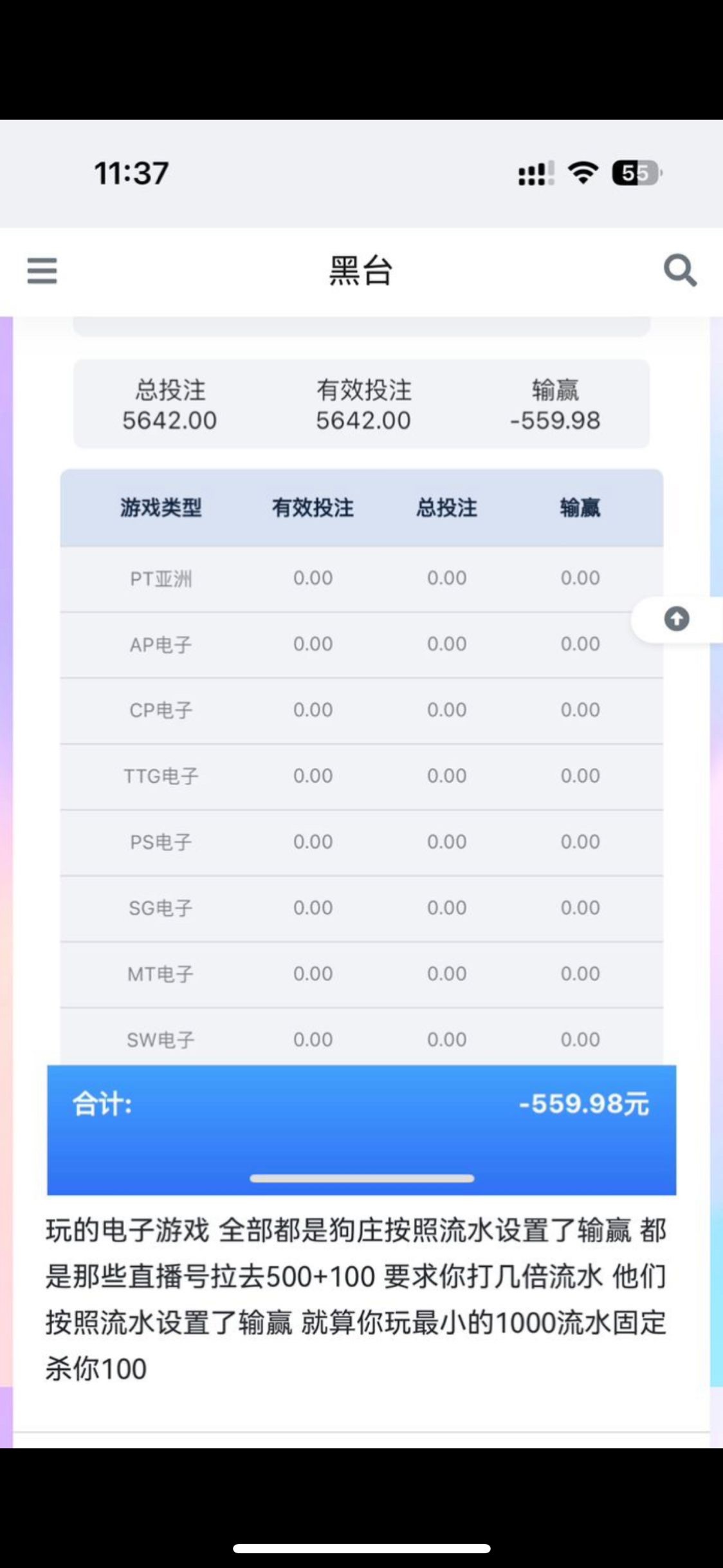 图一系列的台不要玩电子每1000流水设置的负利是300 其他的台全是100而已
