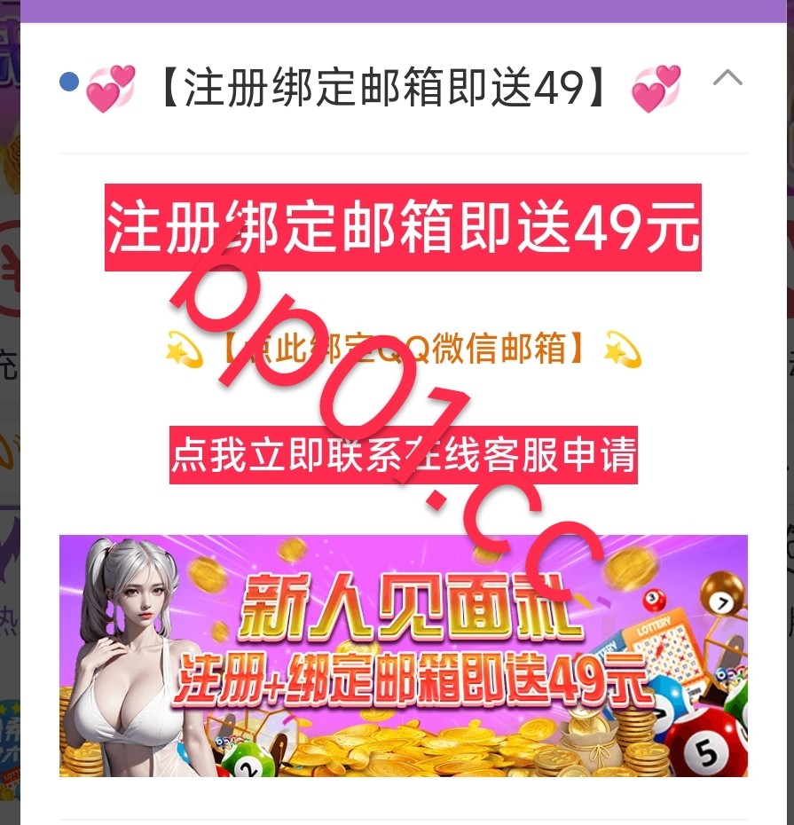 新用户注册绑定邮箱银行卡 联系在线客服领取49元彩金 无游戏限制 最低提款100元