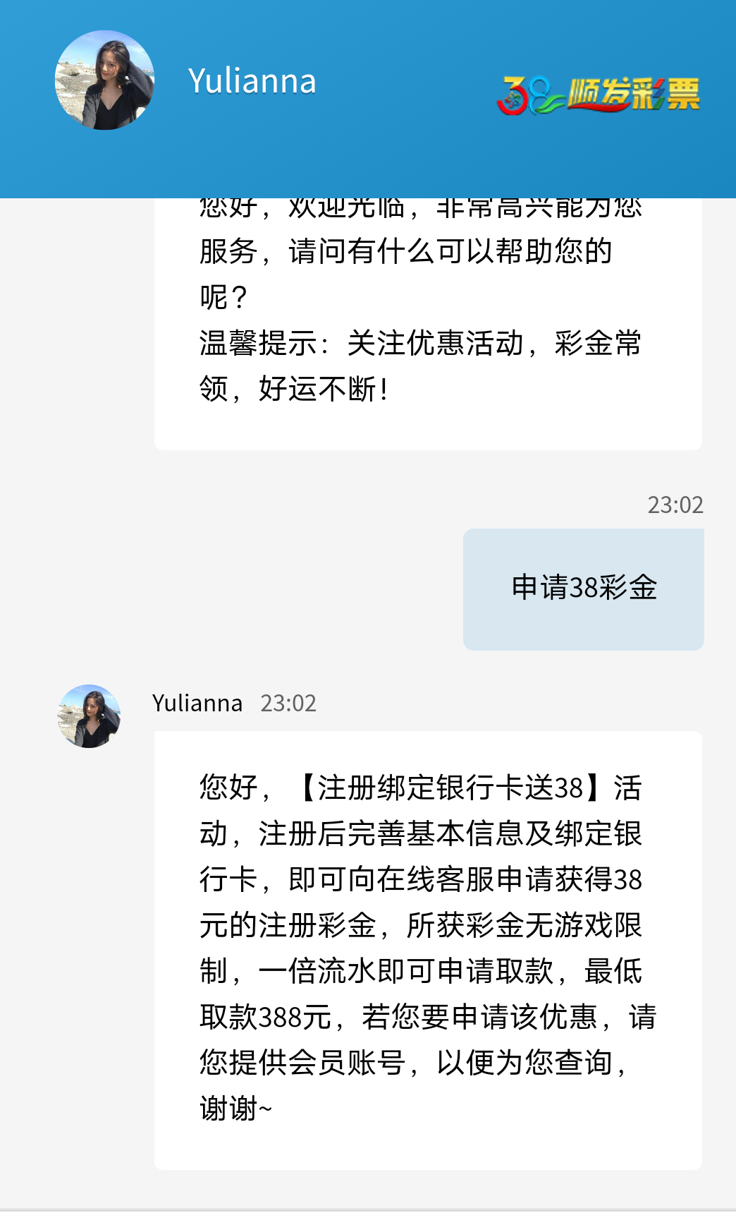 新用户注册完善个人信息绑定银行卡信息联系在线客服申请38彩金  不送无视,黄了无视,打不开无视,满388提现!