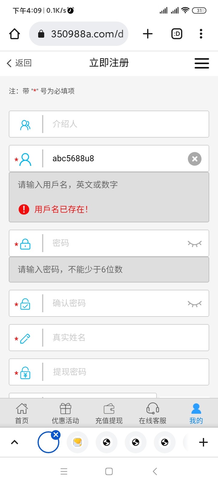 介绍个这家查询账号方式,假注册,直接输入可能是自己的用户名来回忆查找,如果存在的话就显示用户名已存在,注意更改用户名查找需要刷新页面,防止卡顿。