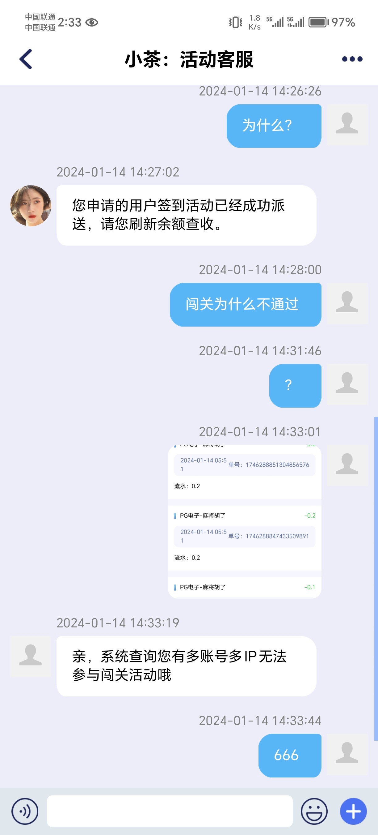 充值了几个小时申请100送100几个小时都没人理我