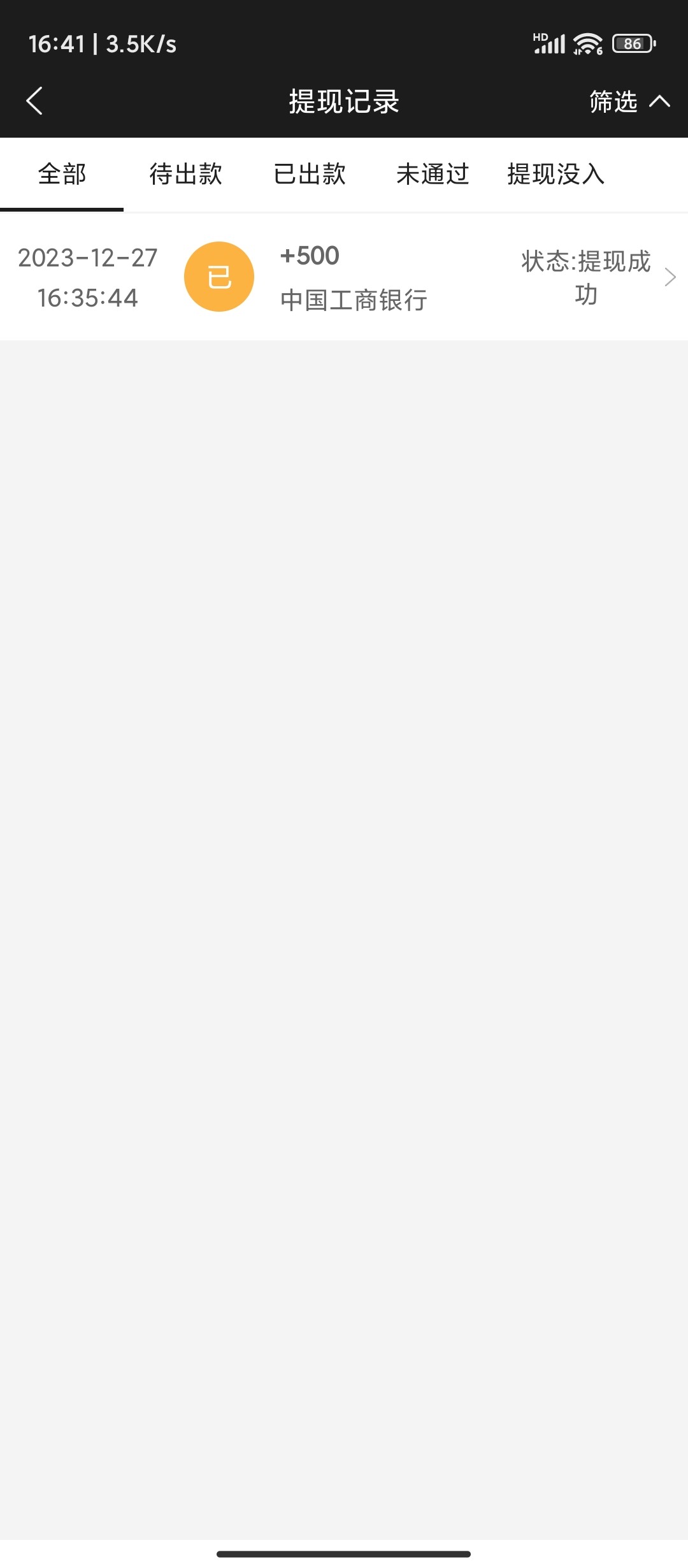 1086提现250不知道给不给 显示提现成功 银行卡没有到账 咨询客服说已经出款了 可能第三方处理吧 ,反正没有冻结账号希望能到吧