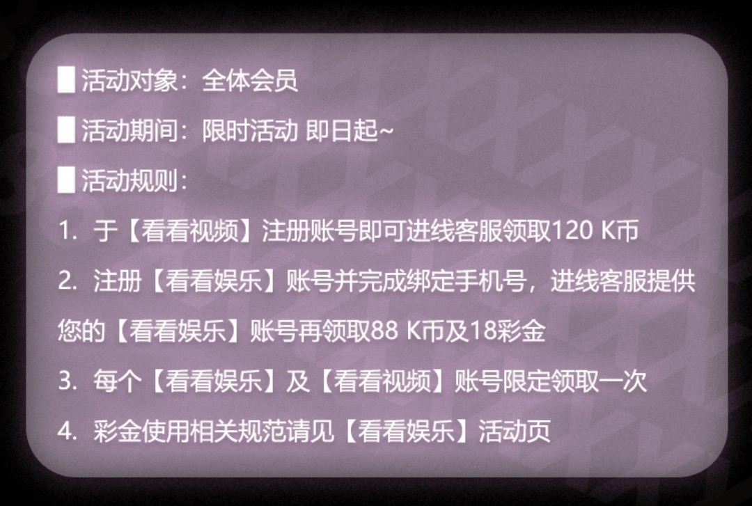 注册看看娱乐和看看视频得208k币和18彩金联系在线客服申请!