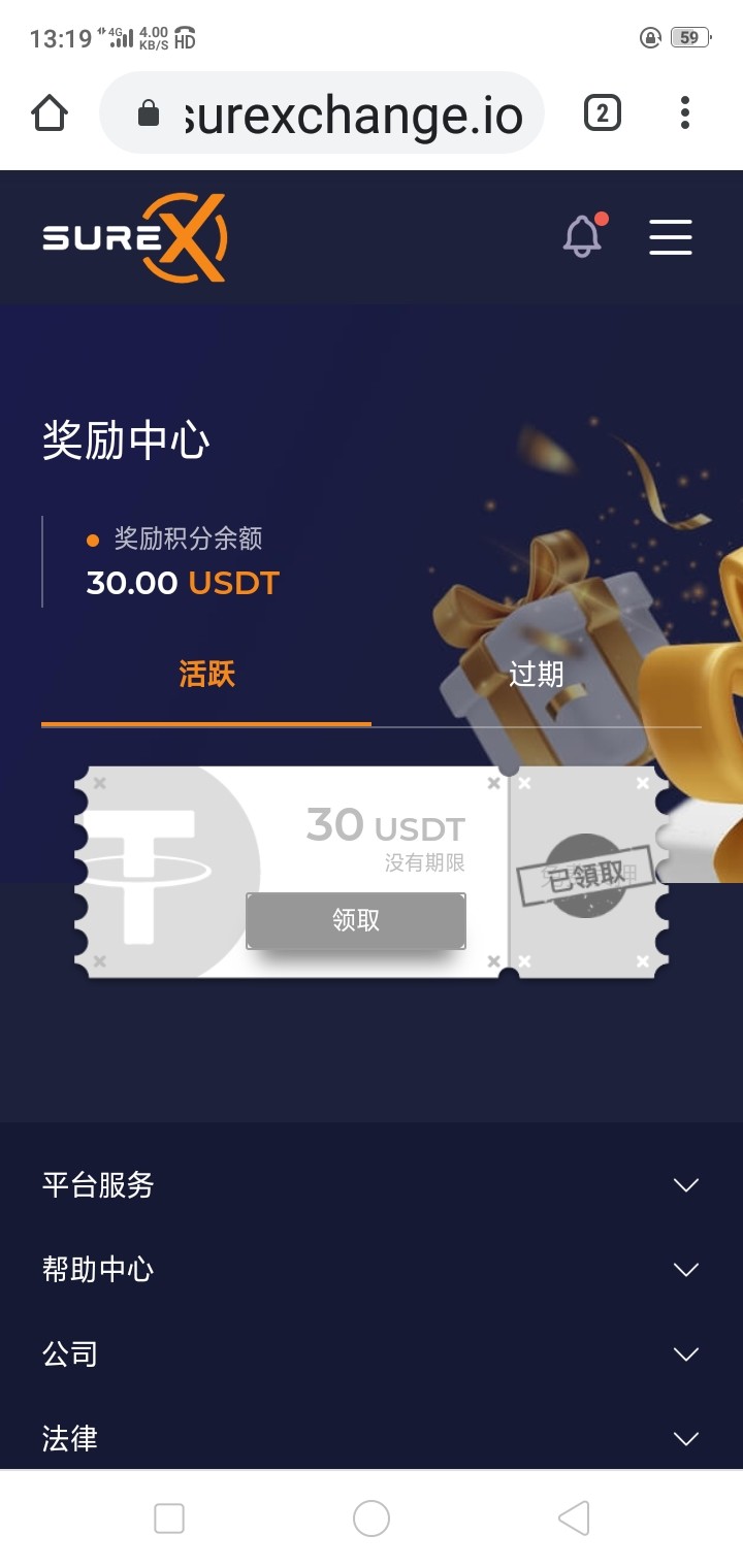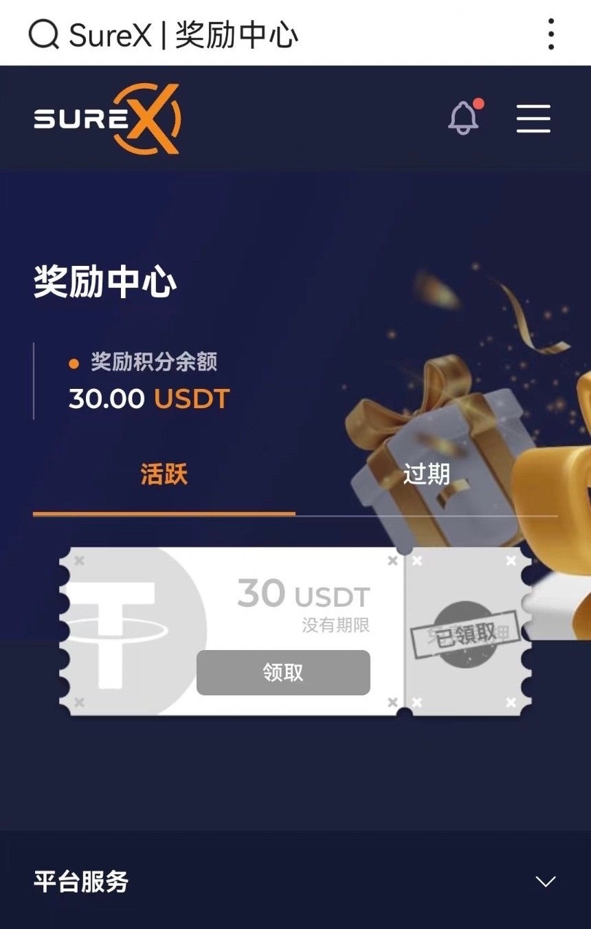 在奖励中心领取30U,自己在找平台充值提出来