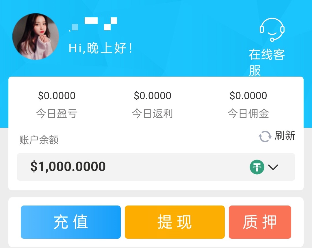 注册体验金1000u,盈利到50000u下分188u