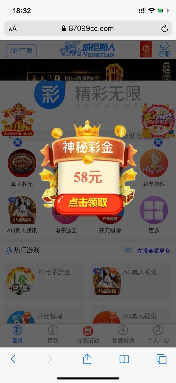 这是电话回馈的 58 神秘彩金 我之前充了100今天来电话送我58