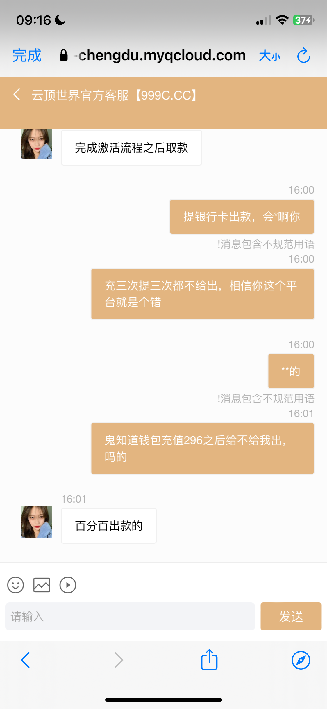 充值600本金盈利几百不给出款!提银行卡显示近期无法银行卡出款,然后各种虚拟币钱包下载认证通过,绑定以后提现又说多次向我钱包转账,转不了,需要激活费296元,我傻傻的信了,说296激活之后百分百出款!支付以后,我重新发起提现,又说296是激活钱包的费用,然后又要激活钱包收款地址418元,能出款的平台会有这么多理由各种费用?可笑的是,我从别的平台提现到钱包都到账了,而这个云顶世界这边还讨要激活费