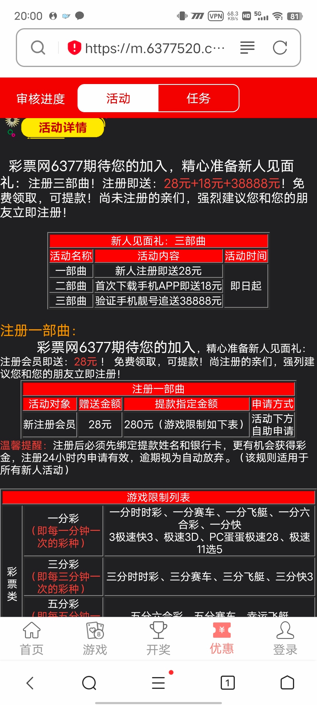 活动:新用户注册绑卡下载APP申请28+18彩金,最低280出款,具体自测。