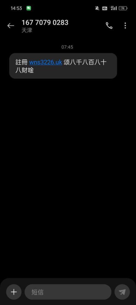 短信内容:註冊 wns3226.uk 颂八千八百八十八財唫