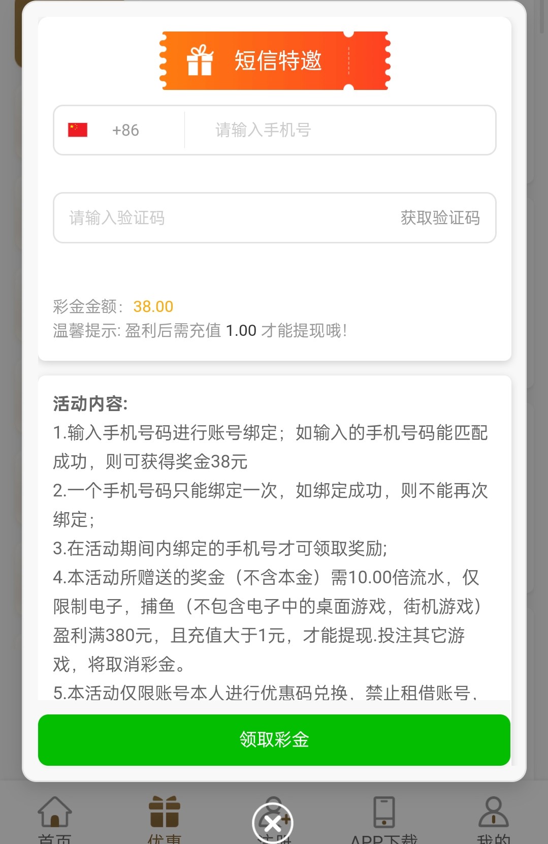 输入手机号先查一下特邀,然后再去注册账号,是特邀秒彩金,不是特邀的话注册送3