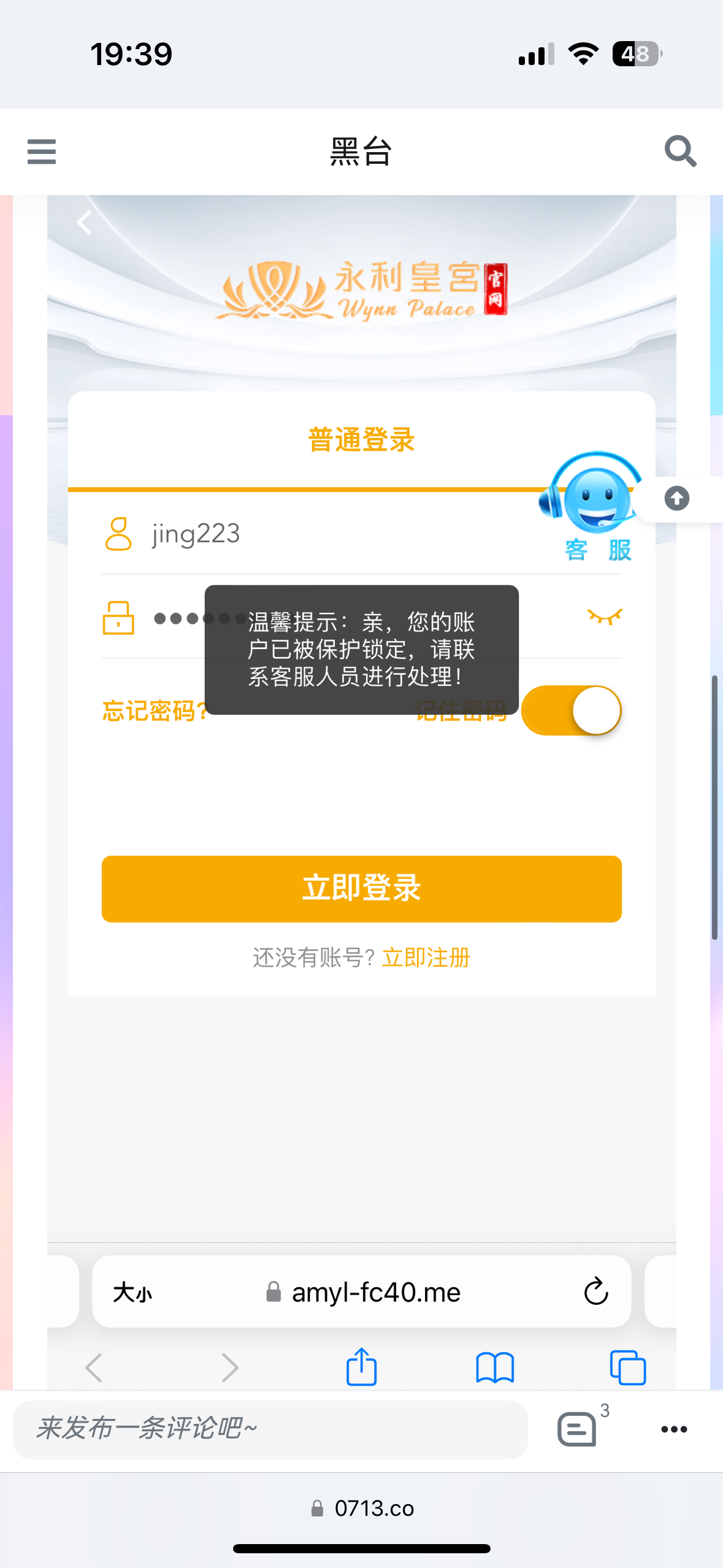 前几个月平移过来的V5,上个月一直在平台玩,上半月输得多,这几天赢回来点,总体还是输,今天领了100月俸禄,打到500多下400提现失败,后天提700直接给我账号封了。联系上次说我脚本下注,真的牛逼,老哥们注意!