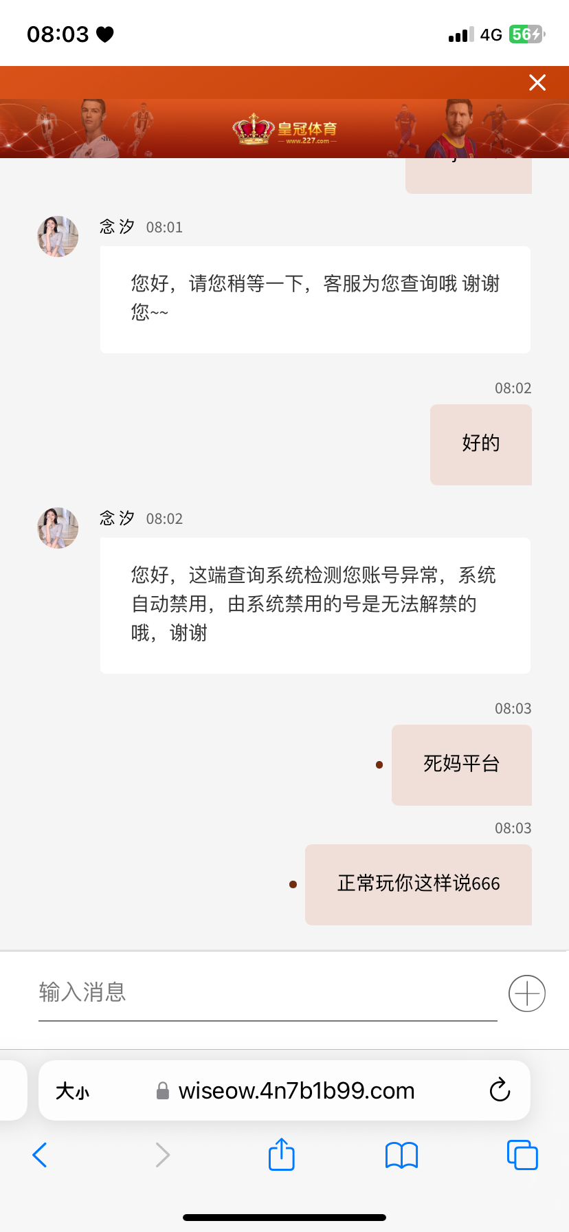 这皇冠真的是个傻逼台,客服回复得超jb慢 等死个人