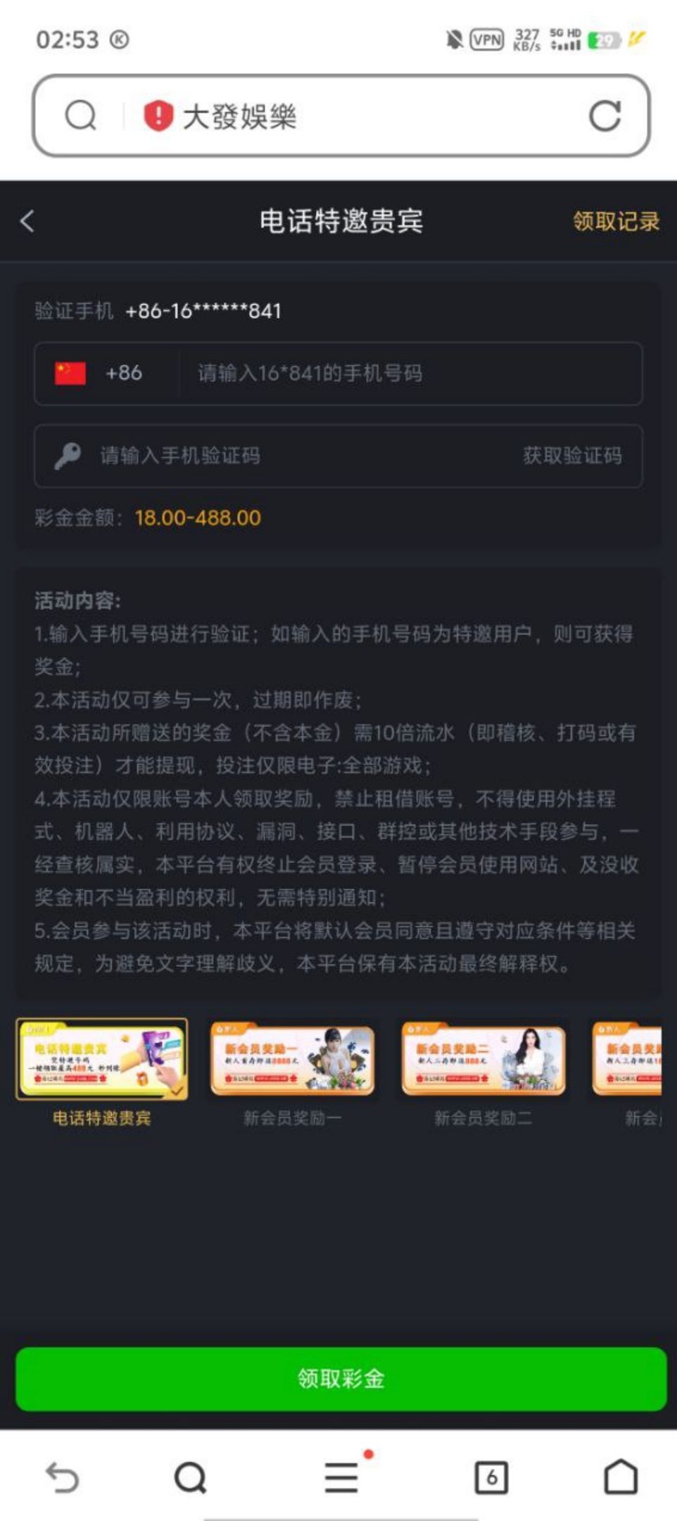 注册绑卡活动自助领取,特邀用户秒到,彩金限制电子游戏10倍流水满足100提现