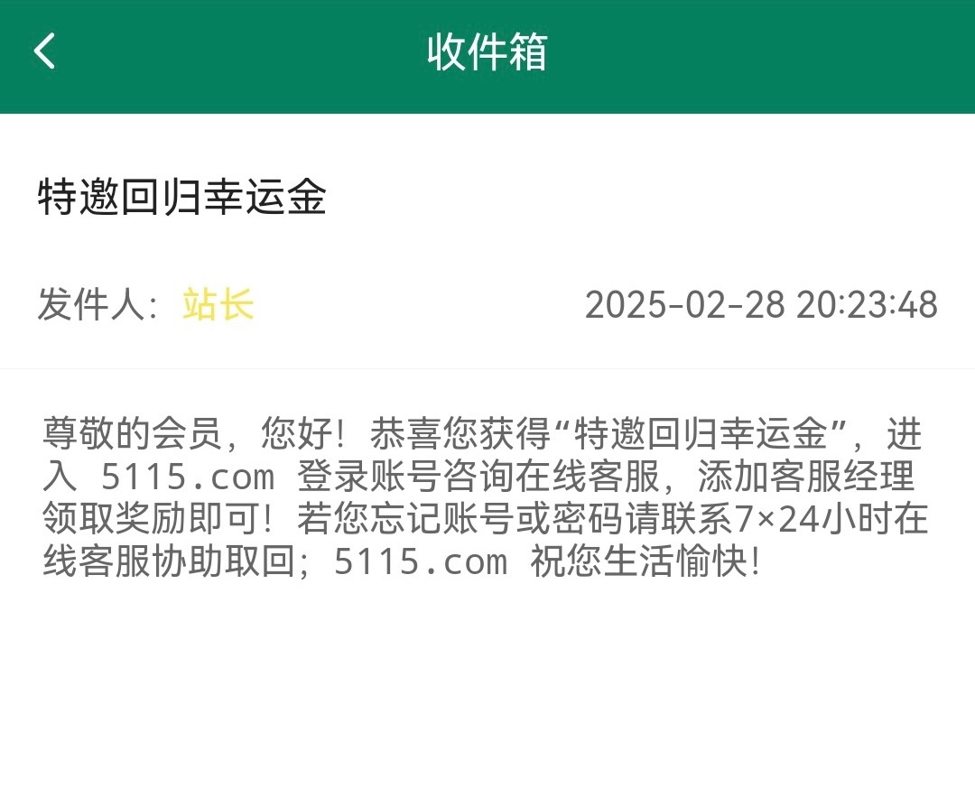 有号的兄弟上号看看站内信有这种信息吗?有的话联系在线客服,添加客服经理领取