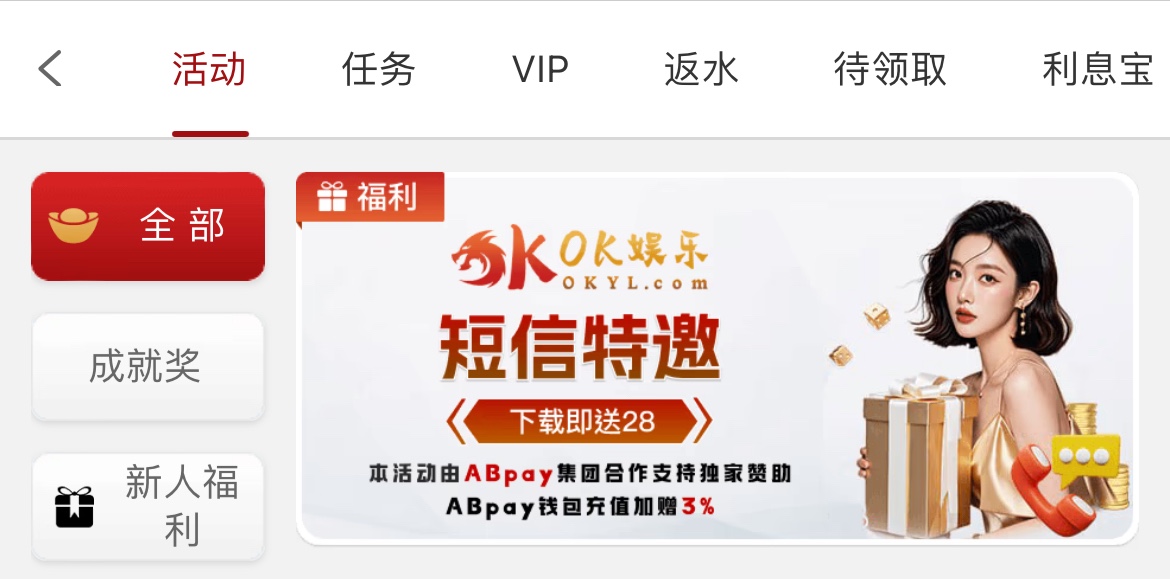 碰瓷短信特邀,下载APP注册送28彩金,彩金3倍流水,限电子捕鱼,只能用abpay钱包取款