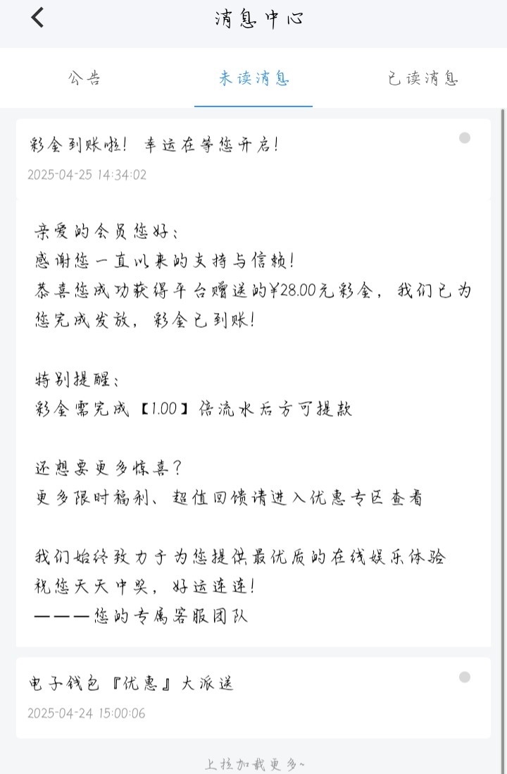 一个月前发过这个站内信彩金有号的兄弟可以上号看看,有的话站内信有显示的,彩金一倍流水