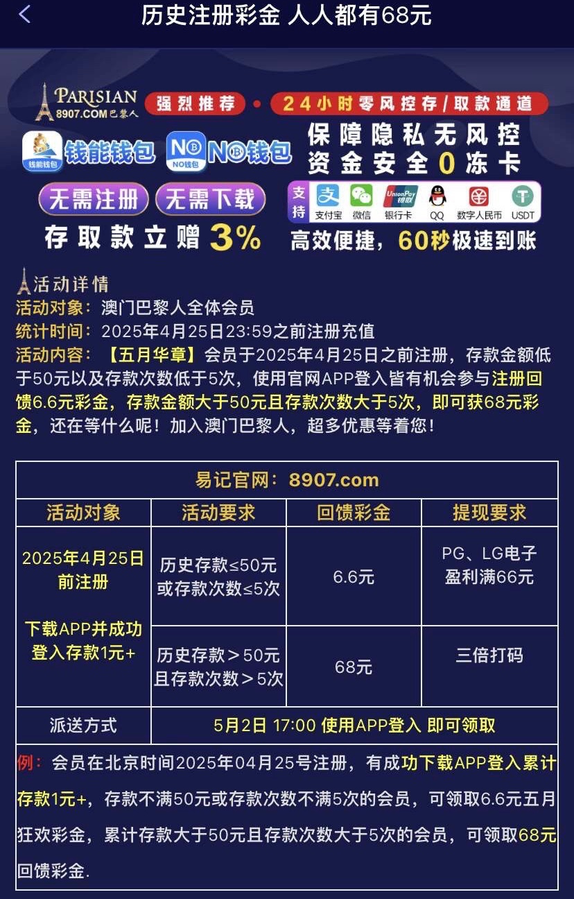 【澳门巴黎人8907】—✅—历史注册回馈
