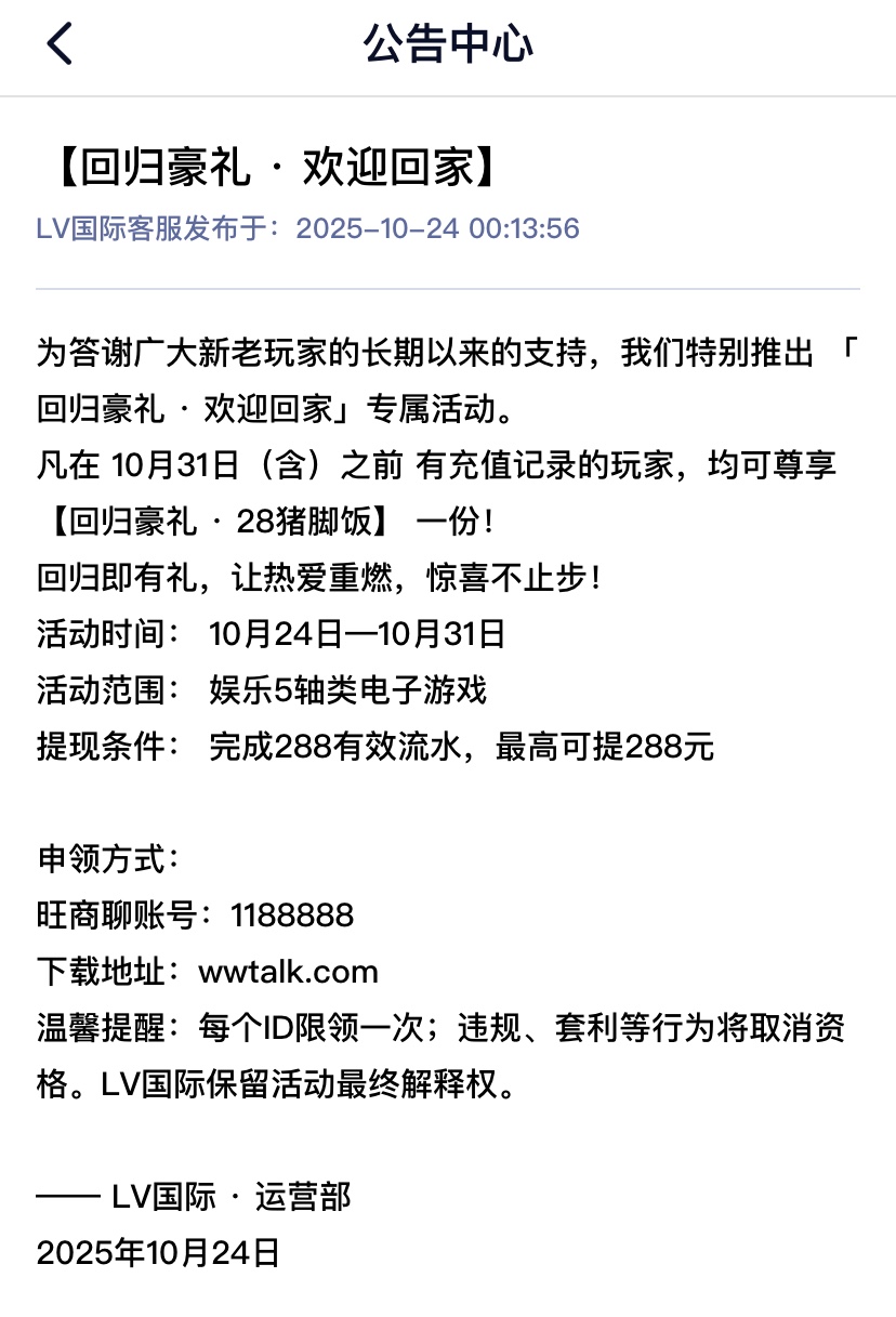 有历史存款过的兄弟可以去联系旺旺客服领取彩金,旺旺号:1188888
