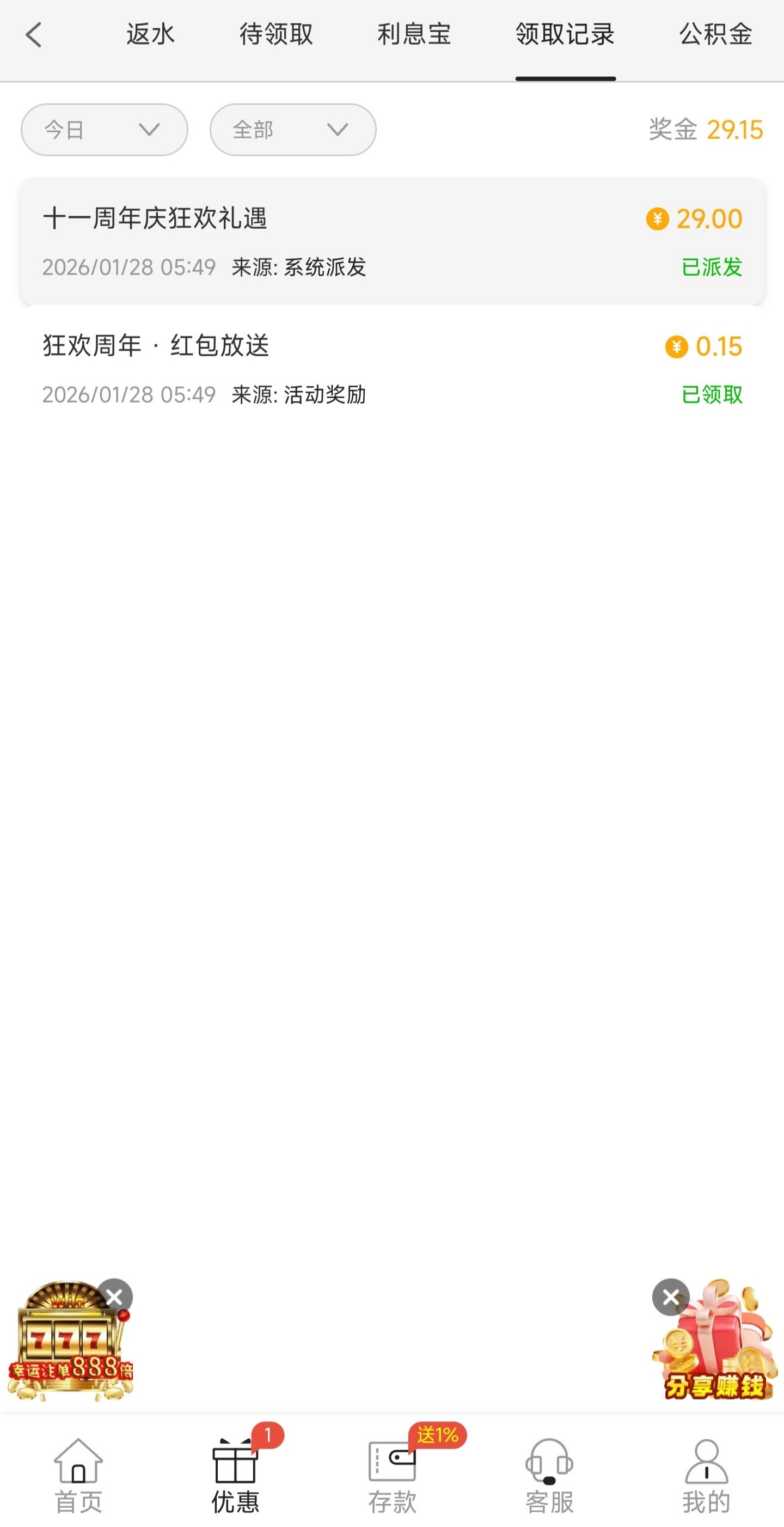 历史充值过2000以上的兄弟可以去领取一下这个彩金连送三天