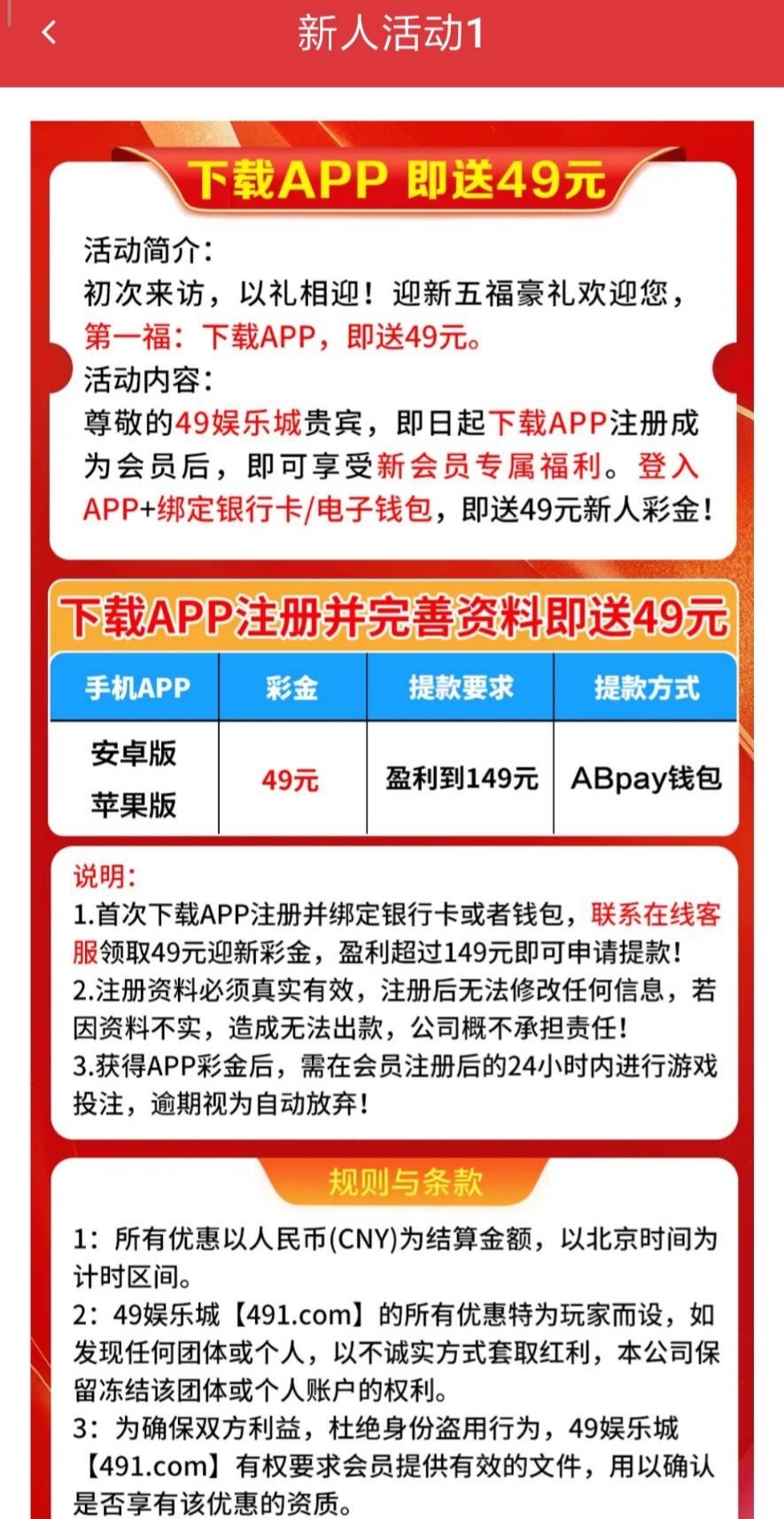 下载APP注册账号绑定银行卡或电子钱包联系客服领取彩金,盈利至149才能取款,仅限ABpay钱包