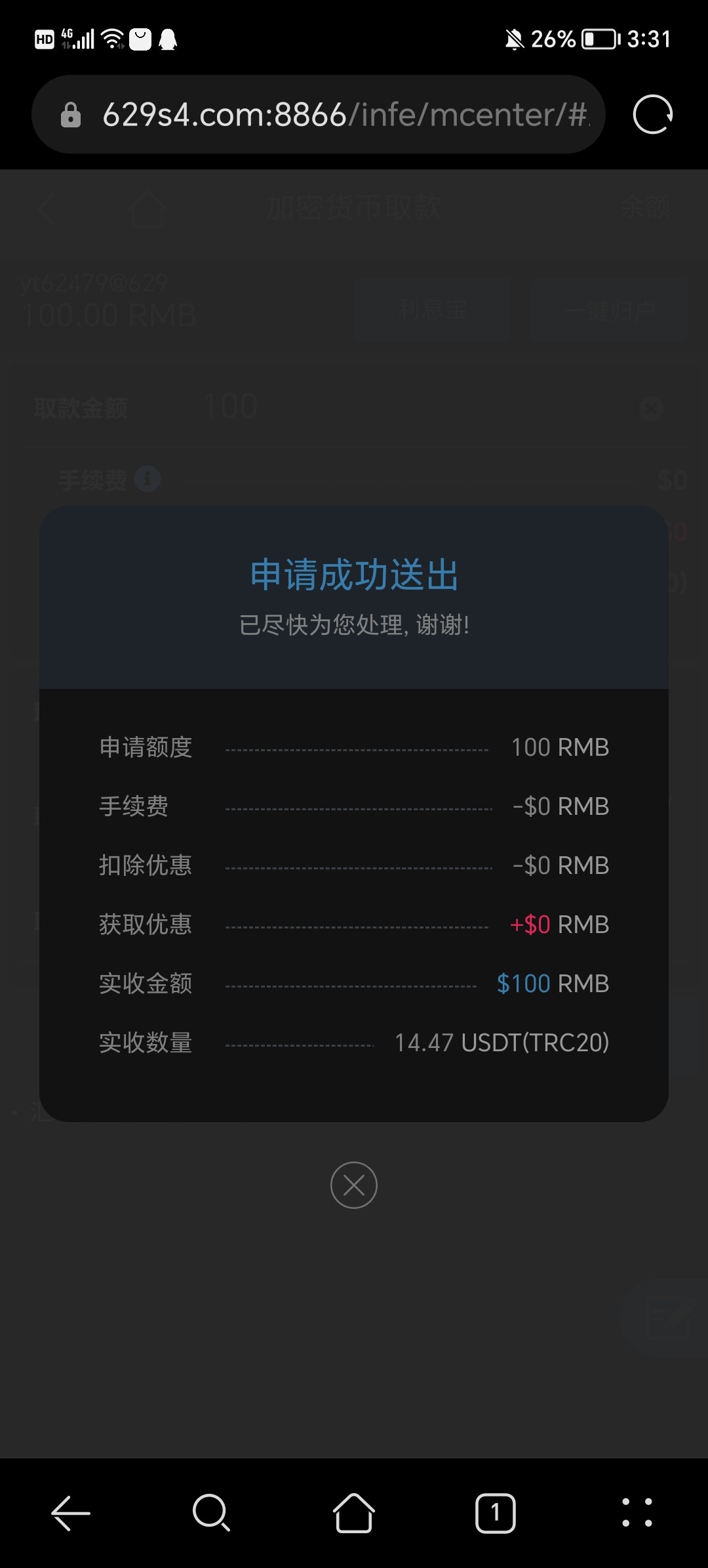 58打520 不知道能不能到账 目前已经半个小时