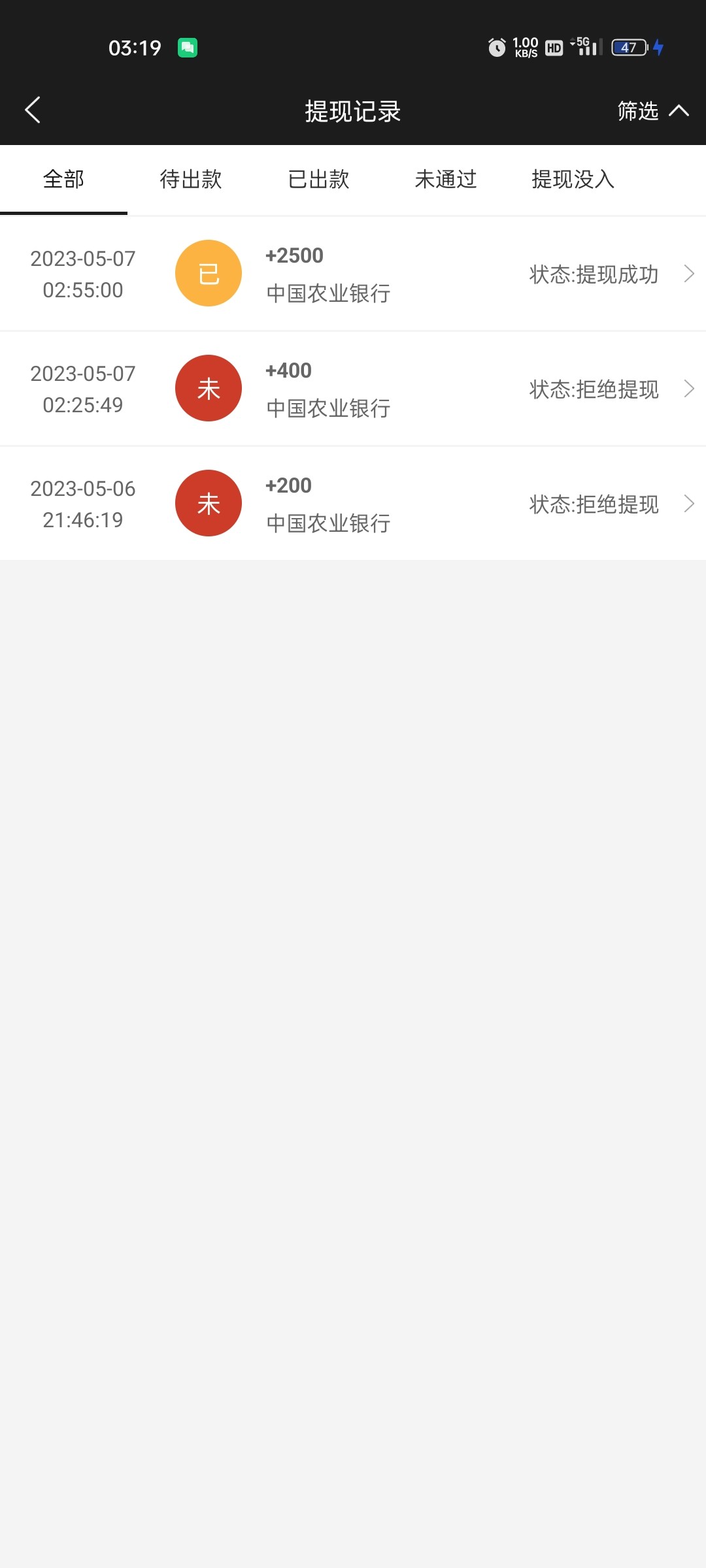 zhanshenge0 ▶ wzm278216 为什么显示提现成功,钱没到账 2023-5-7