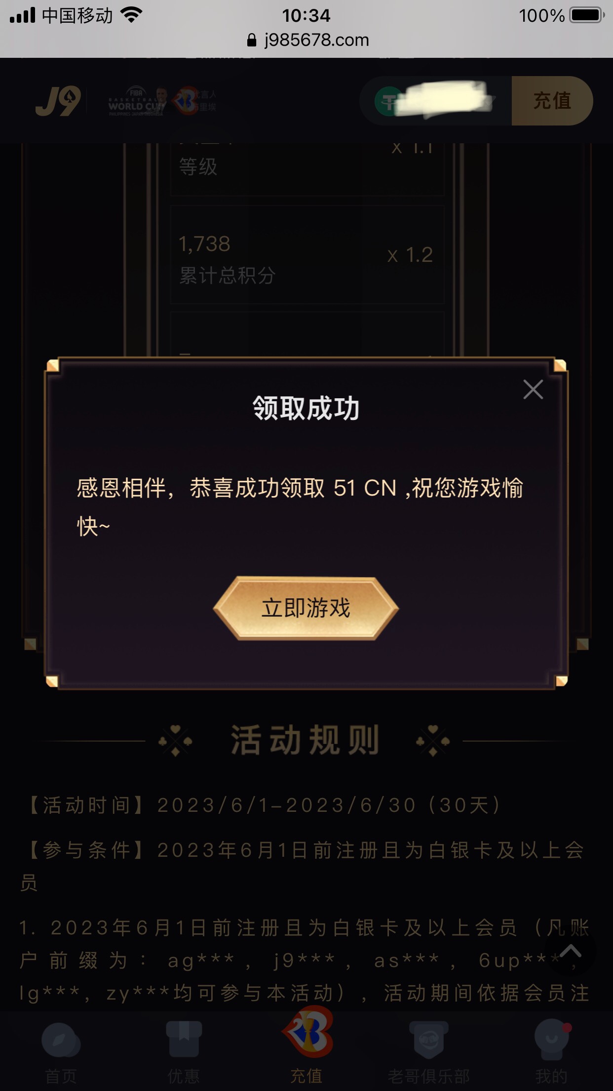 白银卡及以上的玩家去领回馈。