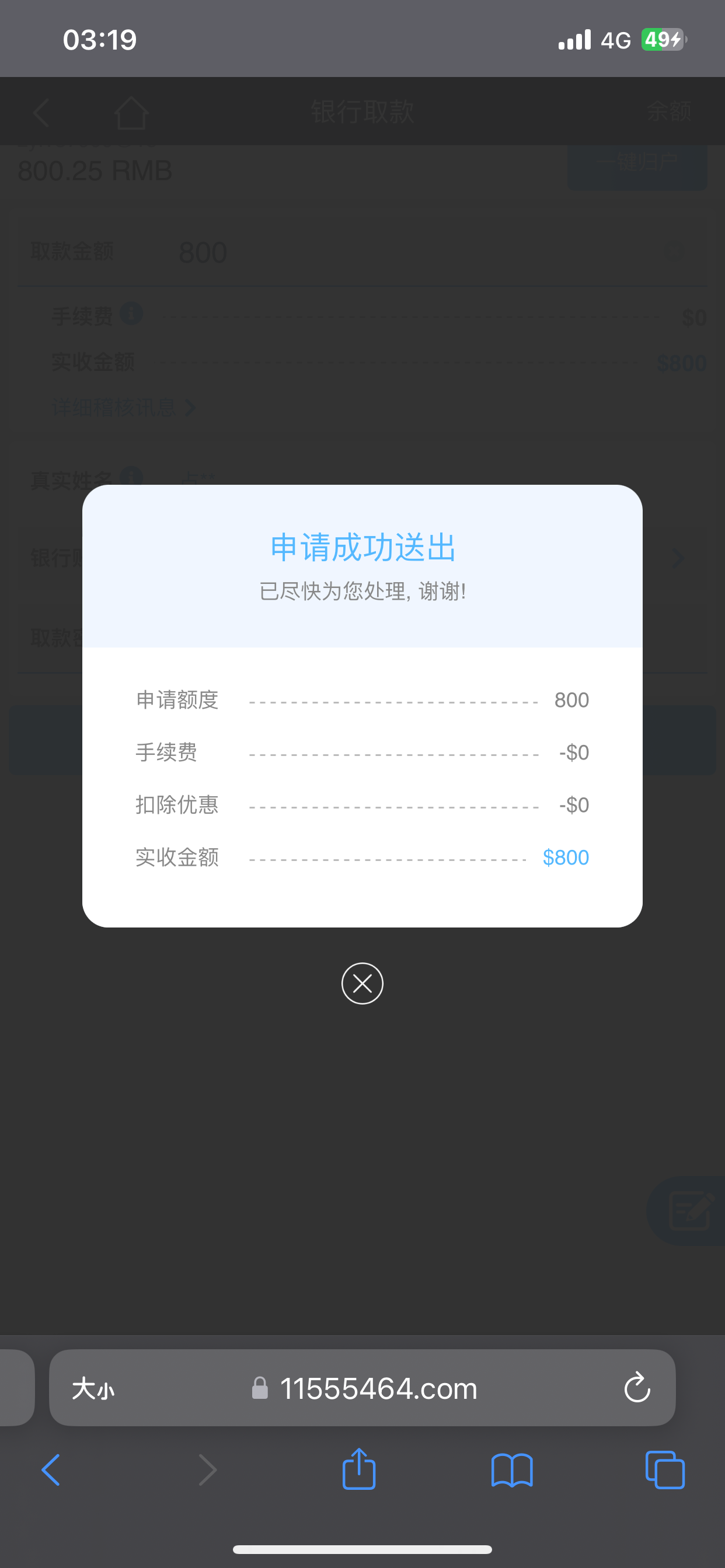 提供了手持800到账了